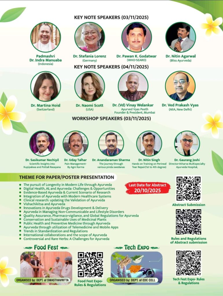 Ayurveda for the Digital Age: Integration, Innovation, and Global Relevance This prestigious event aims to provide a dynamic platform for academicians, researchers, clinicians, policy makers, and students to explore the evolving role of Ayurveda in today’s fast-changing digital era. The seminar aims to provide a collaborative platform for knowledge exchange, evidence-based discussion, and the global advancement of this anciens science. The seminar will also host expert lectures, panel discussions, scientific paper and poster presentations, and cultural exchange opportunities to celebrate the global relevance of Ayurveda. By fostering dialogue between traditional knowledge and modern innovations, collaboratively shape the future of integrative medicine.